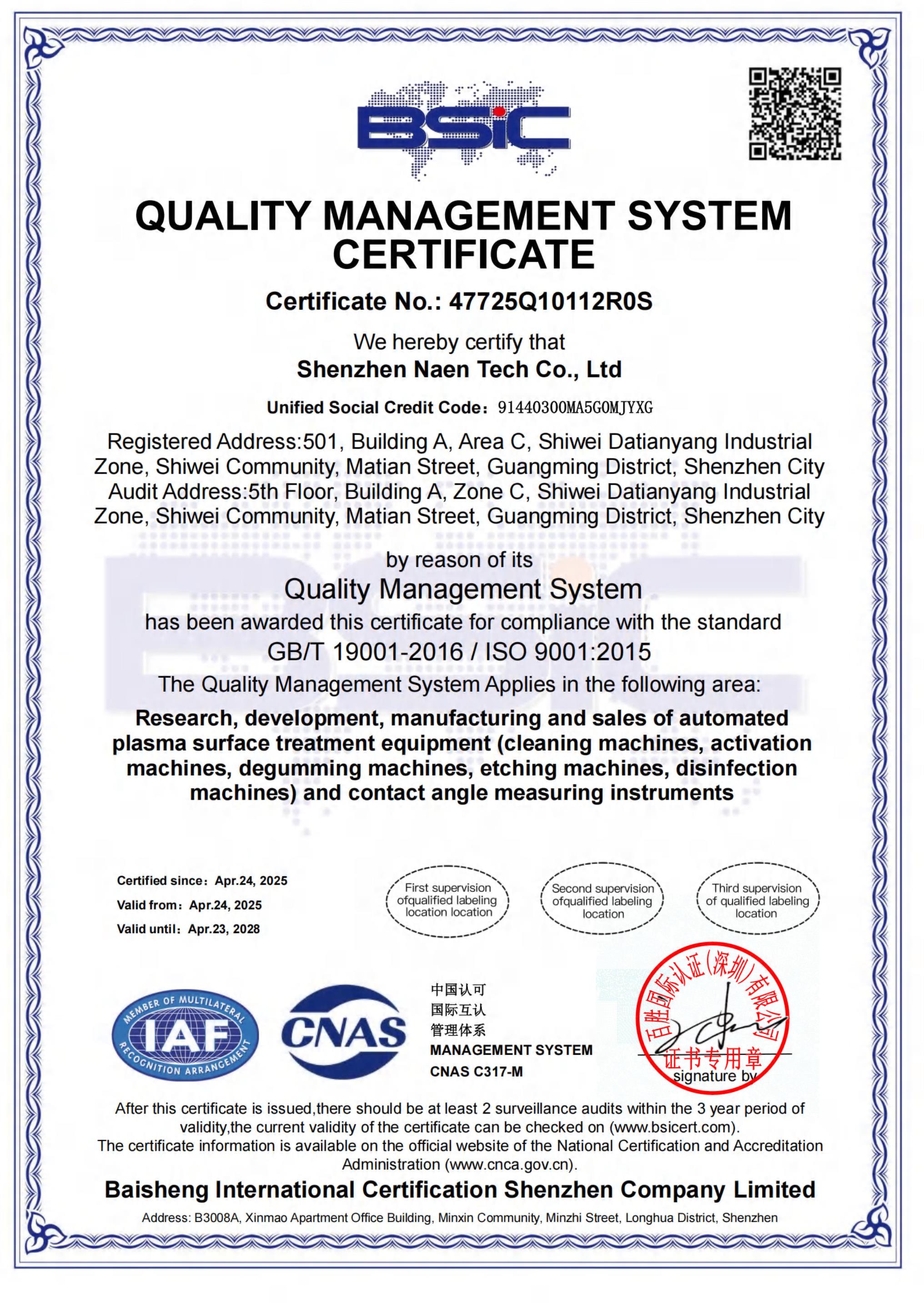 深圳納恩科技有限公司始創(chuàng)于2010年,總部位于深圳市,在香港設(shè)有研發(fā)分公司,是一家專注于低溫等離子體(plasma)技術(shù)應(yīng)用和高端智能裝備研發(fā),制造和銷售的高科技公司。目前主要產(chǎn)品包括大氣及真空等離子清洗機、等離子去膠機、等離子刻蝕機、等離子表面處理設(shè)備、電暈機、低溫介質(zhì)阻擋放電裝置(DBD)等。